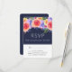 Ett bröllop OSA-kort med en fin bukett med ro med vattenfärg med spritar, löv och grenar tillsammans i en färglös blommigt längs toppen. Kortet är uppdelat färg i mörk blått och vitt.