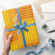 Detta papper har en modern utformning i mitten av århundradet som ser ut som en väv med rött och gult linjer på fält i guld.
