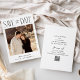 Ett modernt, men enkelt bröllop spara datum-kort med ditt favoritfoto på framsidan. Lägg till mer information och en QR-kod för bröllopswebbplatsen på baksidan.