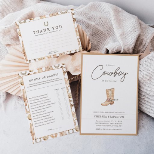 Gratulerar till att du snart kommer att vara baby med vår enkla och moderna sydvästra rodeodesign. Det här lodrät bord-tecknet har en underbar neutralt färg palett, med en skön cowboyhästskon/cowgirl.