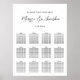 I det här moderna sätesdiagrammet finns ett svart kalligrafiskript på en enkel vit bakgrund. Anpassa med namn och gästens namn. Passar upp till 12 bord. Designad av Susan Coffey.