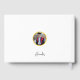 Graduation guest book in black, white, and yellow — bold circular medallion design featuring graduate photo in circular frame, name arched above, college, city, class year, and "Graduate" on the front cover, graduate name and class year on the spine, and graduate photo medallion with signature on the back, available in black or white background. A cherished keepsake where family, mentors, and friends leave their words of encouragement for the driven, well-rounded graduate to treasure long after the celebration. Part of a complete graduation collection including announcements, invitations, thank you cards, party invitations, enclosure cards, envelope seals, favor boxes, favor tags, yard signs, and banners. Fully customizable for your Class of [Your Year] celebration. Need design support? Email remidevandesigns@gmail.com RemideVan©