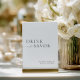 Ett snyggt till gästerna i inbjudan för att ge sig av, sparka och njuta av firande. Det minimalistiska tecknet pub har en ren svart och vit utformning som lätt kan paras med contemporary eller elegant bröllop-dekorering. En fin men polerad detalj som höjer din drink station med modern charm. Fullständigt anpassade till kostym för din händelse. Samordrar med fullt "Elena" bröllop-svit - utforska hela samlingen för matchande tecken, OSA kort, menyer, program med mera.