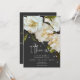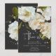 Modern White Gardenias on Black Gnistra Bröllop Inbjudningar