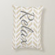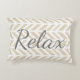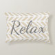 Modern tjockt, vitt örrben med mönster av accentkudde med taupbakgrund och ord "slappna av" i grått-manus. Den här chicen är underbar för en avslappnande beröring till ditt kontor eller till vilket rum som helst där du bara behöver den där kyld atmosfären.