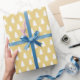 Modern juldesign med vit Julgran mönster på gultens bakgrund. Enkelt skandinaviskt sigillomslag pappert för alla dina julklappar. Om du behöver hjälp eller matchande produkter kontaktar du oss genom vår butik.
