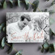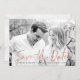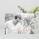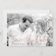 Spara datumkortet med förlovningen "Spara datum" som visas i ett handskrivet faux ro guld-skript som täcker vågrät. Anpassa fotots framsida och spara datumet med namn, bröllop och bröllop. Kortet återgår till visningen med en elegant vit och grått marmor design.