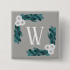 Modern vit ranunculus-blomma och gröntens bladknapp med personligens monogram brev i vitt.