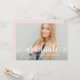 Snyggt och elegant studenten annonskort och partiinbjudan innehåller ett överordnat foto med "student"-skriptövertäckning. Anpassa den moderna anpassningsbarnas text med namn, skola och klassår. Denna dubbelsidiga kortutformning innehåller en formulering om inbjudan till studentfest på baksidan. Schemat för söt rosa och mörk grått/mjuk svart färg kan anpassas för att samordna med bild eller party färger.