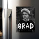 Modern studenten-fotoannonsmagneter med "Grad" i student i en vit, sprejfärgad typografi stil. Anpassa tidskriften för studenten genom att lägga till student namn, namn och studenten.
