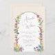 Denna moderna bröllopsinbjudan till blommigten av vilda blommor är perfekt för boho och land, rustiska bröllop, i vår sommar, och fall. Arken dekoreras med vitaktiga, färgstarka, vattenfärgade vilda blommor och utformningen kompletteras med kalligrafiskriptet för eleganten. Kolla in samlingen för resten av matchande bröllopsinbjudningssvit och fler matchande produkter.