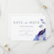 Spara datumet i elegant stil med unika handmålade vildblomsfärgade teckningar och vackra typografiskript som är lätta att anpassa med bruden och triummerna namn och bröllop. Modern vildblomma bröllop spara datum-kort för en boho blommigt sommar bröllop. Unika musselblommor, inklusive kornblommor, kosmos och glöm mig inte med ömtåligt blad som målats av konstnären Catherine Sweetman i kornblomblått, blått, marinblått, lila och grönt. Perfekt för den botaniska trädgården eller utomhusängen vår eller sommarträdgårdsängen bröllop. Sök efter matchande objekt i den moderna vildblomman Blue bröllop-sviten