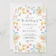 Inbjudan. En enkel, elegant ram av blommigten för vattenfärgsmätare i rosa, mjuk persika, blå, gult, orange och sage-grönt omger modern, ren text. Perfekt för rustik, blommigt, trädgård, boho, vår, sommar eller vildblomsterkallat bröllop. Den här minimalistiska chicen är en kombination av romantik, färg och sofistikering - perfekt för utomhusceremonier eller firande på landsbygden med en viskös beröring. 🌸 🌿