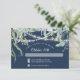 Vacker marinblå BOHO naturlig Eukalyptuslund, skogstemat inbjudan för en utomhusbröllop på kvällen. Blinkande ljus hänger från eukalyptusblad mot en mörk svart bakgrund. KOMPLETT KOLLEKTION: https://bit.ly/39xwDxr (kopiera och klistra in länken i webbläsaren). Upphovsrätt, Audrey Jeanne Roberts.