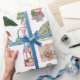 Modern Winter Gräs Grönt Träd och björn Presentpapper