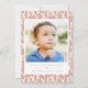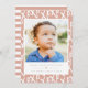 Modern penslad "xoxo"-skrift i vitt och dammig rosa, enkel foto, Alla hjärtans dag-kort. Baksidan av kortet har ett koordinerande rosa och vitt randmönster.
