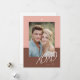 This modern Valentine’s Day design features a clean, romantic layout with a soft blush pink upper section paired with a warm mocha brown color block for a trendy, elevated look. A handwritten-style “XOXO” script adds a sweet, contemporary touch, while a small heart detail above the photo enhances the romantic feel. The front showcases a large customizable photo area, making your favorite moment the focal point, with personalized names displayed below for a meaningful finishing detail. The balanced color palette and minimalist typography create a timeless design that works beautifully for Valentine’s Day, anniversaries, engagements, or romantic keepsakes, blending modern style with heartfelt personalization.