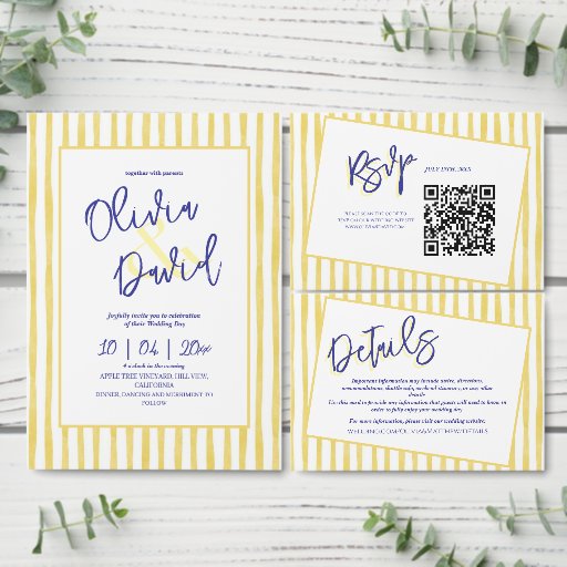 Modern Yellow Hand Written Pinstripe Italy Wedding OSA Kort
