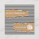 Den presenterar en moderiktig svartvit mönsterbakgrund, och guld- glitter borstar slår för information om kontakt.