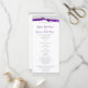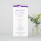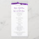 Modern grått och vit chevron eller zig zag mönster accentuerade i lila med ett bröllopsprogram för att uppfylla vår bröllopsinbjudan.