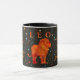 Leo Zodiac, moderna egenskaper mugg visar royalet rött lejont på en svart bakgrund sprinklad med färgstarka stjärnor. De bästa egenskaperna för zodiactecknet visas tillsammans med läget och linjalen. Du kan anpassa dig med din favorits Lejona namn.