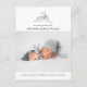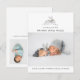 Modern födelseannonsering med stora foton längs nedre kanten, akvarellkanin med klassisk och modern typografi. På baksidan finns ytterligare ett foto med anpassningsbart meddelande.