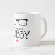 Visa kärleken med denna jättekaffekopp som har grafiska glasögon med orden "Min stilige make" och ett litet hjärta.