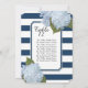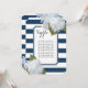 Dessa platstilldelningskort kan användas på varje bord eller i entrén till er mottagning. Dessa bordskort kan ramins, placeras på en hållare eller användas på många andra sätt för att dirigera era gäster till deras platser vid er formella bröllopsmottagning, bröllopsfest eller formella företagsaktivitet. Ändra bara bordnummer och gästlista för varje kort och lägg det i er varukorg. Här visas korten med plats för 10 per bord, men ni kan anpassa listan efter era behov och helt enkelt dra den till mitten när ni är klara med hjälp av funktionen "anpassa". Denna design har en handmålad blomsterdesign med mjuka blå hortensiablommor. En kraftig marinblå och vit randig bakgrund är ihopparad med en ram i art deco-stil med utskjutande hörn som är konturerad med ett falskt silver