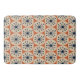 Modern atomdörr Retro Mönster Bath Mat. Utformning av roligt med en modernt estetisk vintage i mitten av modet. En nod mot 1950-talets rymdålder och designens stilar och tidigt 60-talet. Har orange, marinblått och beige toner. Av Kierkegaard Design Studio.