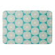 Modern atomdörr Retro Mönster Bath Mat. Utformning av roligt med en modernt estetisk vintage i mitten av modet. En nod mot 1950-talets rymdålder och designens stilar och tidigt 60-talet. I Turquise aqua Blue krämtans. Kierkegaard Design Studio.