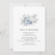 Moderna Blommiga QR-kod-inbjudningar till bröllopsfest. Tillgängliga digitalt och i tryckt format. En elegant naturinspirerad design. Med en blekblå och vit bukett ovanför enkel och fullt redigerbar typografi. Lägg till din QR-kod på din bröllopswebbplats på baksidan så att dina gäster kan svara och se alla detaljer online utan att behöva separata inlägg. Text- och bakgrundsfärger kan ändras om du vill passa din bröllopstema bättre via alternativet anpassa ytterligare.