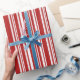 Den stilfulla anpassningsbar som slår in papper, presenterar ett modernt mönster av röda och vitrandar i varierande bredder. Perfekt för jul, valentin dag och annan tillfällen.