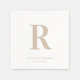 Den här monogramnapkin från bröllop erbjuder en modern minimidesign. Monogrammet visas i stor sandtext med namn och datum mindre på vit färgad.