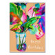 Blommar modern blom- vätskeabstrakt för födelsedagen i färgrik ljus livlig stil. Vid konstnären Sacha Grossel från en original- stillebenvattenfärgmålning. Artydesign som är färgrik och modern.