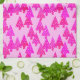 Modernt Mitt--Århundrade, förskönad blomma, julgranar i en silkeslen lutning - träd skuggar in av djupa fuchsia rosor som betonas med kräm, på en pastellfärgad rosa bakgrund