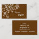 Modern blommigt-snurrar och fågelbrun visitkortsmall, med vita snurrar och prickat linjer med löv, blommor och fåglar på hängande ringar på bruna bakgrunder. Den här söta, moderna designen har en känsla för det och är perfekt för använda för privatpersoner eller professioneller.