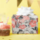 Detta eleganta Moderna Blomster Namn Bröllop Inpackningspapper visar upp ett handritat rött och svart blommönster på en stilren taupe bakgrund med hortensia, hibiskus, jasmin och bignoniablommor. Anpassa med din rubrik, namn och datum. Perfekt för förlovningsfester, par duschar, bröllop eller någon romantisk firande.