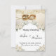 Denna eleganta bröllopsinbjudan erbjuder svep skript kalligrafi text med en modern blomsterdekoration och en fotoöverlägg på baksidan av en två guldringar bakgrund.
