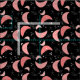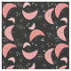 Modernt tyg från Bomerang mönster i mitten av århundradet. Bomerangs är laxens rosa mot svart bakgrund med rektanglar och stjärnor.