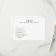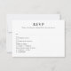 Detta eleganta svarsbrev har en sofistikerad svart-vit design, perfekt för en modern och tidlös bröllopsestetik. Framsidan visar ett klassiskt svarsformat med förfinad serif-typografi, så att gästerna enkelt kan svara medan de väljer sina måltidsalternativ. Baksidan visar ett minimalistiskt botaniskt monogram med parets initialer och bröllopsdatum, vilket ger en personlig och stilren touch. Den stilrena svart-vita designen skapar en förfinad och lyxig känsla. Idealisk för formella, moderna eller klassiska bröllop, säkerställer detta svarsbrev ett polerat och sammanhängande utseende för din brölloppsbrevlåda.