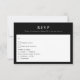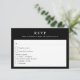 Detta eleganta svarsbrev har en sofistikerad svart-vit design, perfekt för en modern och tidlös bröllopsestetik. Framsidan visar en klassisk svarsformat med förfinad serif-typografi, så att gästerna enkelt kan svara medan de väljer sina måltidsalternativ. Baksidan visar ett minimalistiskt botaniskt monogram med parets initialer och bröllopsdatum, vilket ger en personlig och stilren touch. Den stilrena svart-vita designen skapar en förfinad och lyxig känsla. Idealisk för formella, moderna eller klassiska bröllop, säkerställer detta svarsbrev ett polerat och sammanhängande utseende för din brölloppsbrevpapperssvit.
