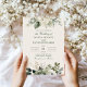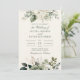 Denna moderna salvia gröna och elfenbensvita bröllopsinbjudan kombinerar rena linjer med delikat vildblomsillustration för en raffinerad men ändå naturlig look. Dess balanserade layout framhäver era namn och datum medan den mjukt inramar designen med akvarellgrönska och elfenbensfärgade blommor. Perfekt för par som planerar ett modernt bröllop i trädgården, utomhus eller med minimalistisk stil. Paletten följer de ledande trenderna för 2025–2026, med fokus på dämpade botaniska motiv och luftig elegans. Helt anpassningsbar för att matcha era evenemangsupplysningar och tema. Passar perfekt med matchande svarsbrevskort, menyer, program och skyltar.