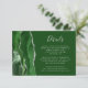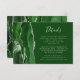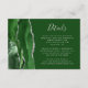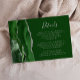 Den vänstra kanten på detta eleganta moderna bröllopsdetaljkort har en jägaregrön akvarell-agat-kant med falskt silverglitter. Titeln visas i handskriven stil, med anpassningsbar text nedan i silvergrå kopparplåtstil på en jägaregrön bakgrund. Baksidan har en matchande grön och silver agat-design.