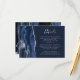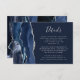 Den vänstra kanten på detta eleganta moderna bröllopsdetaljerfäste har en marinblå akvarell-agatkant med falskt silverglitter. Titeln visas i handskriven stil, med anpassningsbar text nedan i ljus silvergrå kopparplåtstil på en mörk marinblå bakgrund. Baksidan har en matchande marinblå och silver-agat-design.