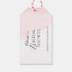 Moderna bröllopspresenttags dekorerade med söta pastellfärgade vattenfärgpeoner.