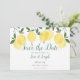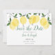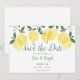 Detta moderna botaniska citroner spara datum kort har en elegant skrift spara datum ovanför dina detaljer i chic typografi. Designad av Thisisnotme©