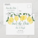 Denna moderna botaniska citroner spara datum-kort har en elegant handskrift sparad datum ovanför dina detaljer i chic typografi. Baksidan har ytterligare information om spara datum, inklusive din bröllopswebbplats, med din returadress och utrymme för din mottagares adress. Designad av Thisisnotme