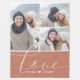 Dessa unika flanellfilt har 3 av dina favoritfoton i ett rutnät med enfärgat dammigt rosa block med skrivstil kärlek och era namn nedan.