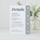 Håll dina gäster informerade med detta eleganta Modernt Dammtor Blue Art Deco-kort för brölluppsdetaljer. Detta inklusionskort har en sofistikerad vertikal geometrisk kant i stålblått och sandbeige, som ger en ren och läslig layout för din mottagningsinformation, hotellboende och webbadress. Baksidan visar din anpassade monogram och en funktionell QR-kod, som ger gästerna ett teknikvänligt sätt att skanna efter kartor, registreringsinformation eller ytterligare bröllopsuppdateringar. Designad för att perfekt komplettera din Art Deco-brölloppssvit, säkerställer detta dubbelsidiga kort att all din viktiga evenemangsinformation delas med stil och tydlighet.