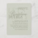 Moderna detaljer för grönbröllop med modernt manus tilläggskort